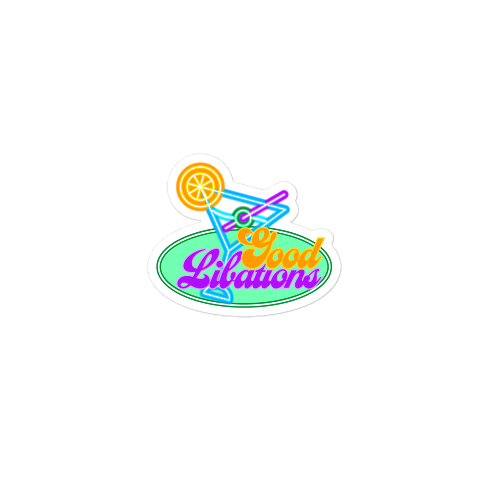 A vinyl sticker with a neon-sign Martini cocktail with the words Good Libations, a play on the humorous use of the word libation for just having drinks and the phrase Good Vibes. I'm not really a drinker myself, but some liquor or a cocktail during dinner is always nice, especially with friends.