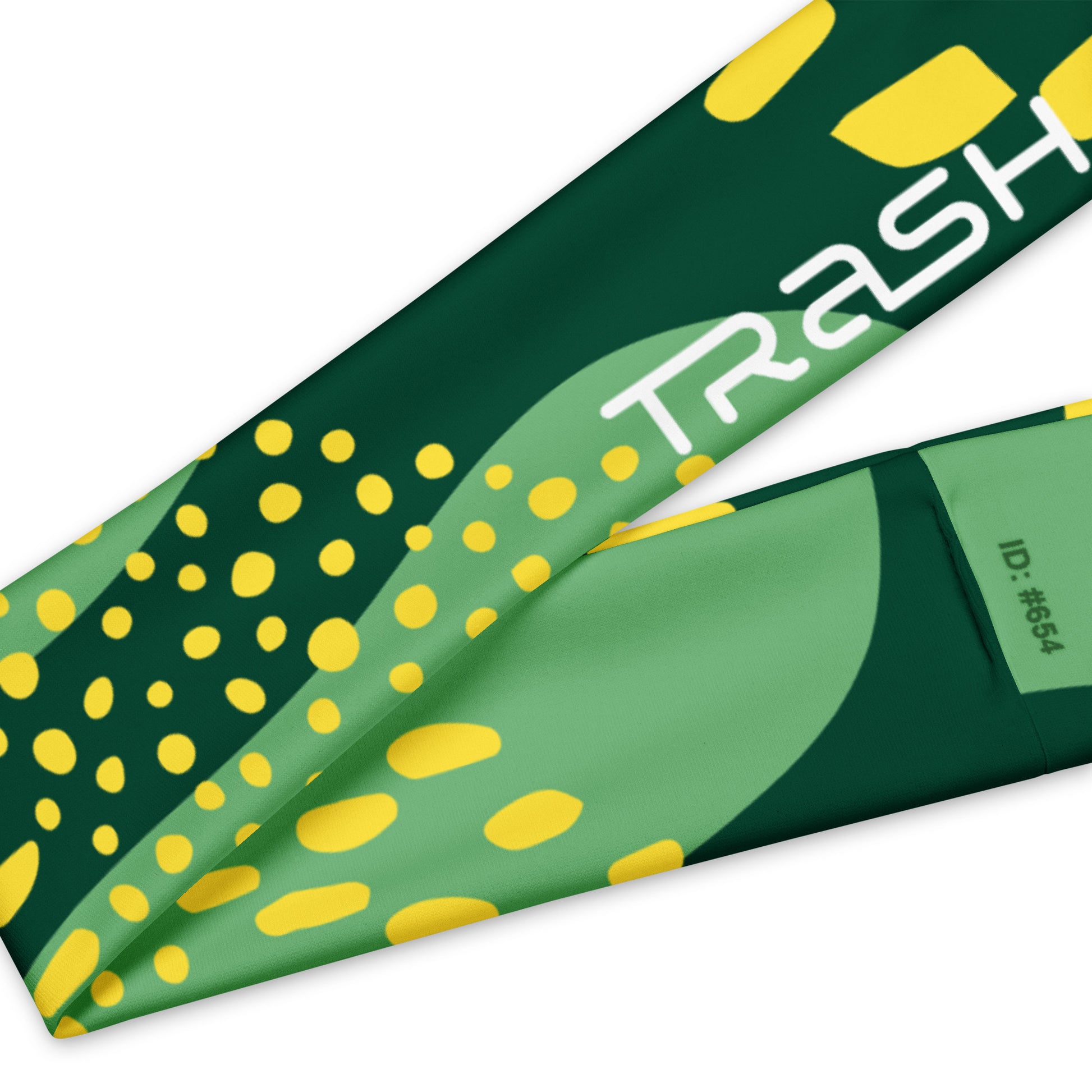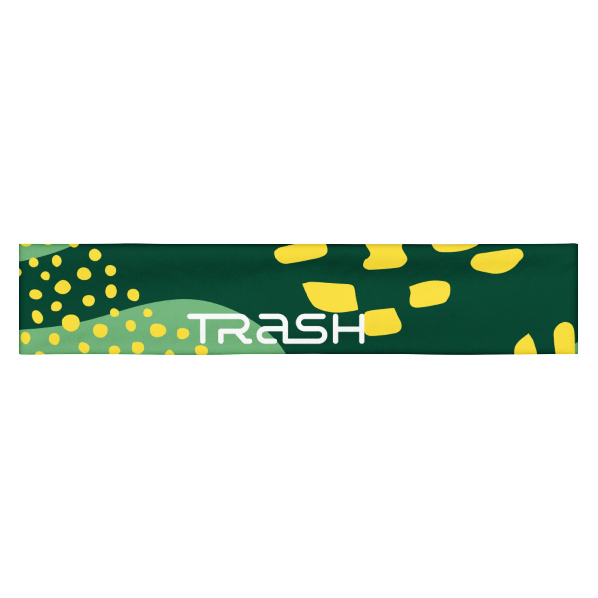 A headband featuring the word TRASH as well as a green background with artistic yellow specks reminiscent of fireflies. I keep seeing those ads for the JUNK Brand headbands, and I am just a sucker for parody. I really could not help myself on this one. Introducing the TRASH Brand headbands!
