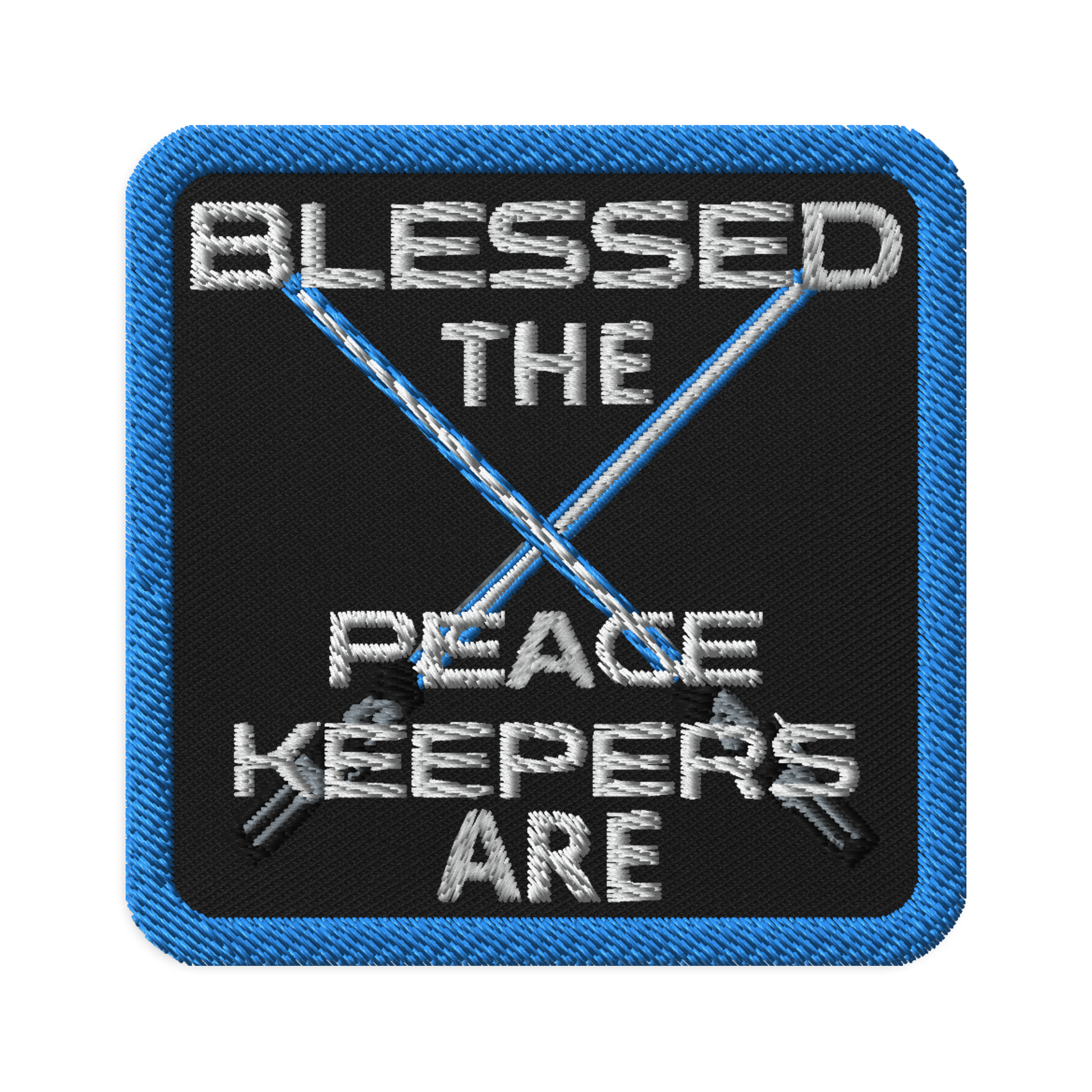 An embroidered patch featuring a pair of blue lightsabers and the phrase Blessed the Peacekeepers Are. Get it, it's phrased like Yoda was saying it? And Jedi kept the peace? I'll see myself out.