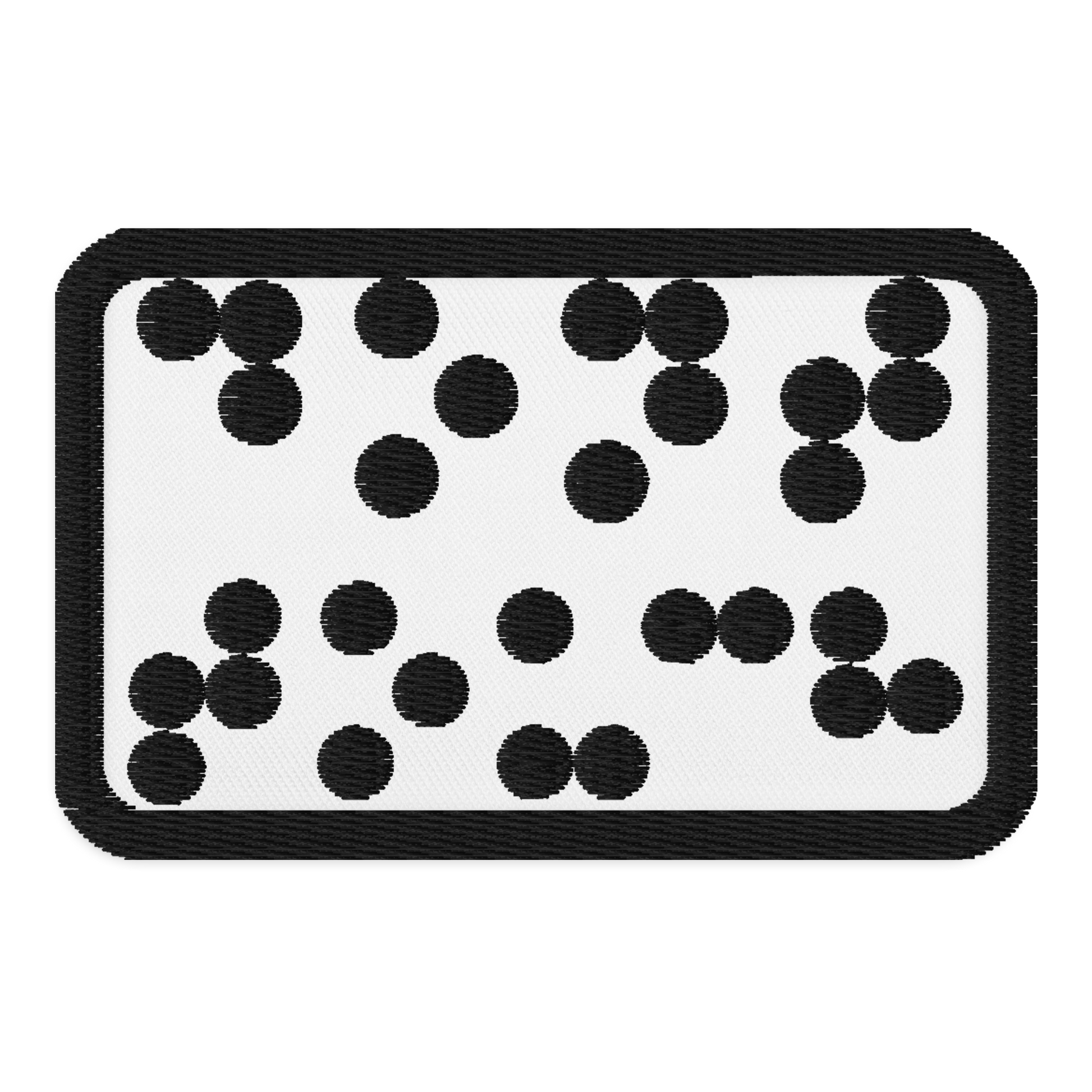 An embroidered patch featuring the words Don't Touch, but written in Braille. The whole concept of being a blind person and reading that on a sign just cracks me the hell up.