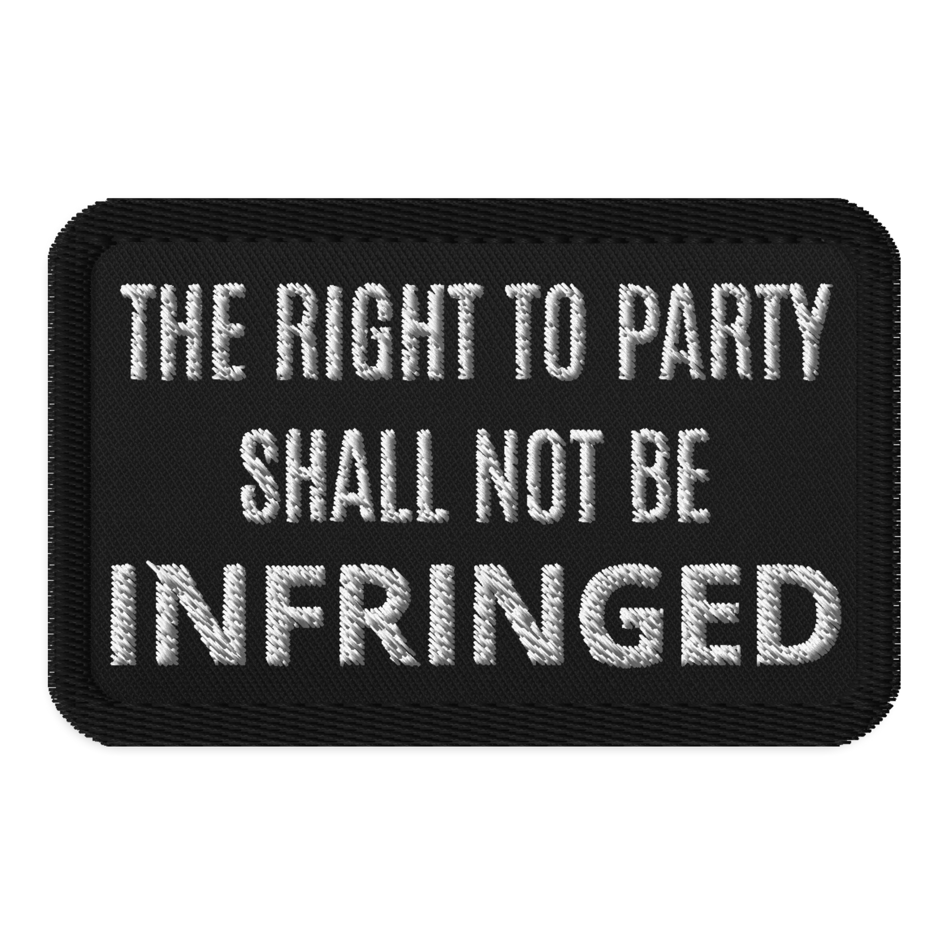 An embroidered patch featuring the words The Right to Party Shall Not Be Infringed. Beastie Boys said it best, and I can't imagine a better party than a worker's party.