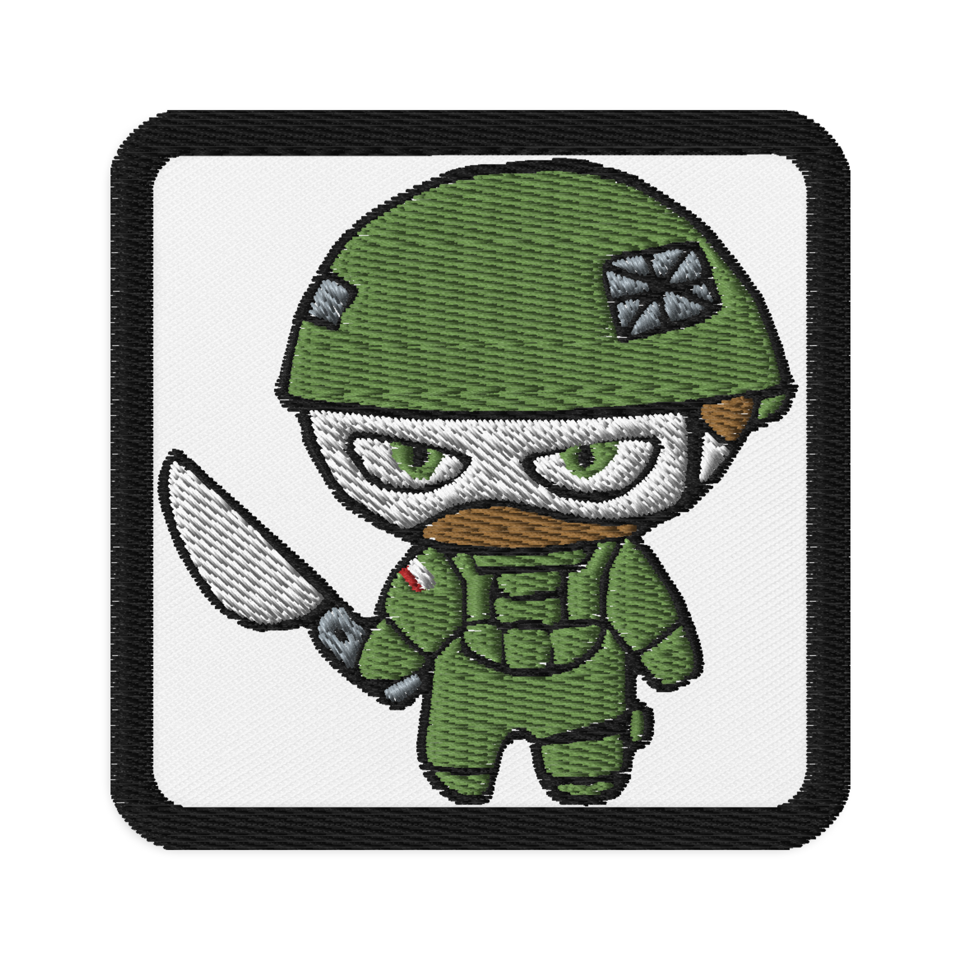 An embroidered patch featuring a small, Stewie Griffin-esque Polish soldier, wielding a kitchen knife. This was a specific request from a customer. If you would like something similar, please feel free to reach out to me.