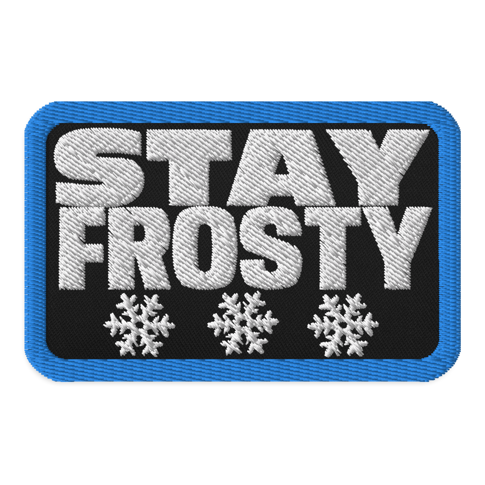 An embroidered patch featuring the words Stay Frosty, along with some snowflakes. Remember to always keep your cool, lads. Especially when under fire.