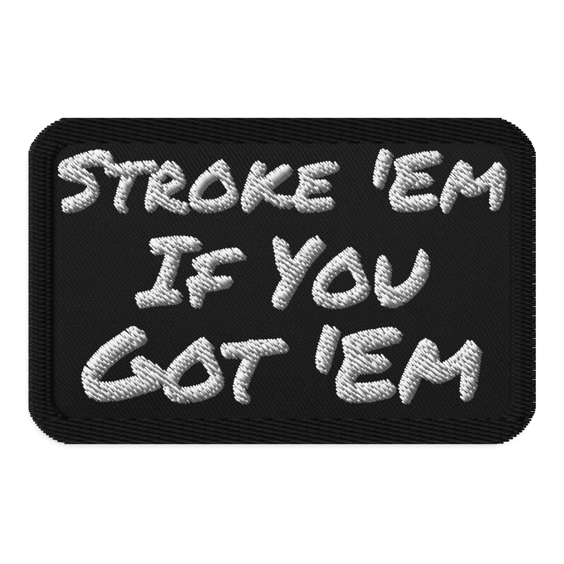 An embroidered patch featuring the words Stroke 'Em If You Got 'Em, a parody of the popular phrase "smoke 'em if you got 'em". There comes a time in everyone's life, smoker or not, when you really just need to sit down and take a long, deep drag off a fat dart. If you're convinced you're different, well, then you haven't had the kind of day I'm talking about.