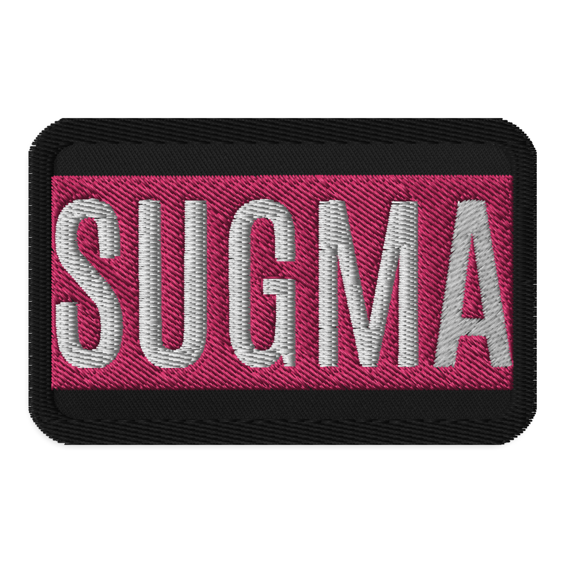 An embroidered patch featuring the word Sugma. As in, sugma balls.
