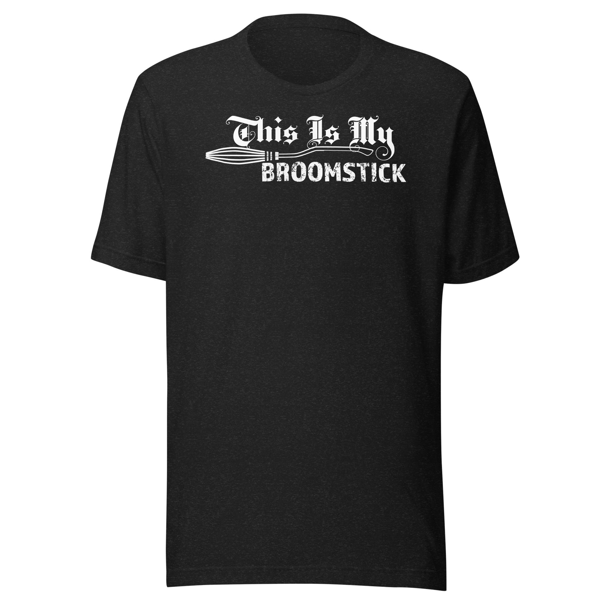 A shirt featuring a broomstick along with the words This Is My Broomstick, a reference to both witch-shit during the Halloween season, the right to personal property in a collective system, and the Sam Raimi film starring Bruce Campbell- Army of Darkness.
